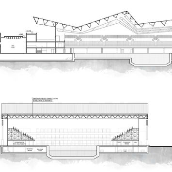 The main challenge in the project is to pass these distances indoors without creating a column. In order to achieve this, first of all, the tree column structure is used. The columns in this tree structure are connected to each other by shed trusses. A row-column beam system with a span of 73 meters is provided in this way, and the two sides are connected to each other by 3-dimensional triangular trusses.